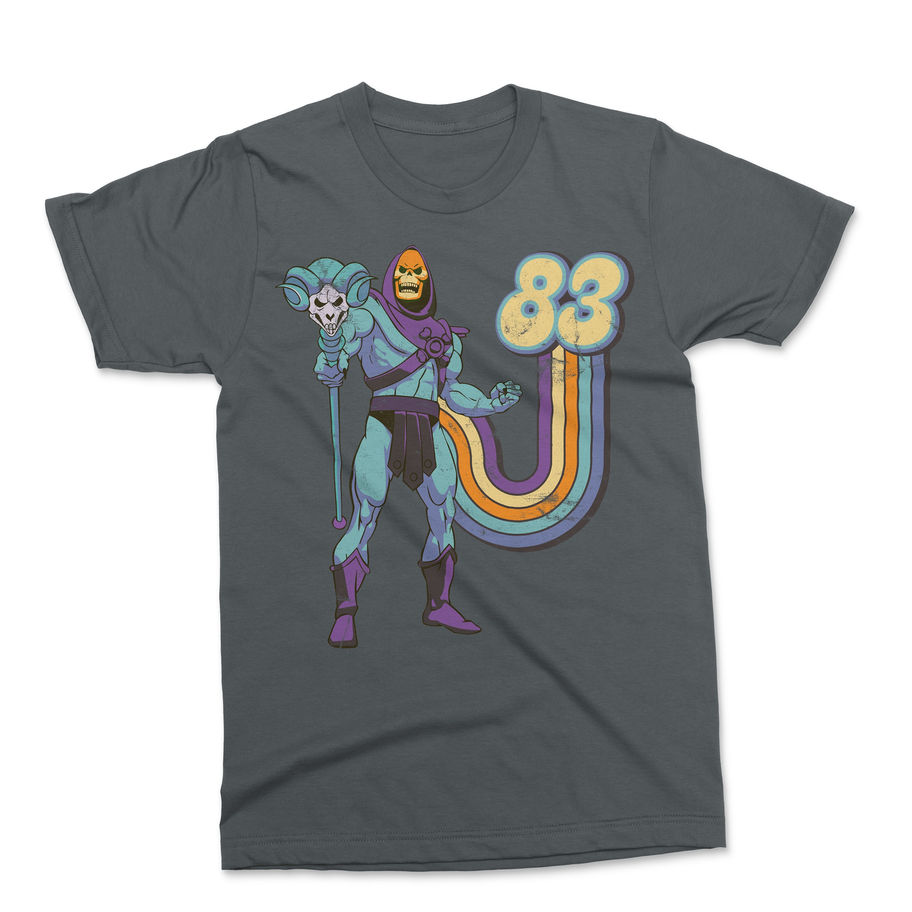 He-Man Master of the Universe, Skeletor retro eighties adult unisex crew neck t-shirt. Lightly distressed effect, personalized year number of your choice.